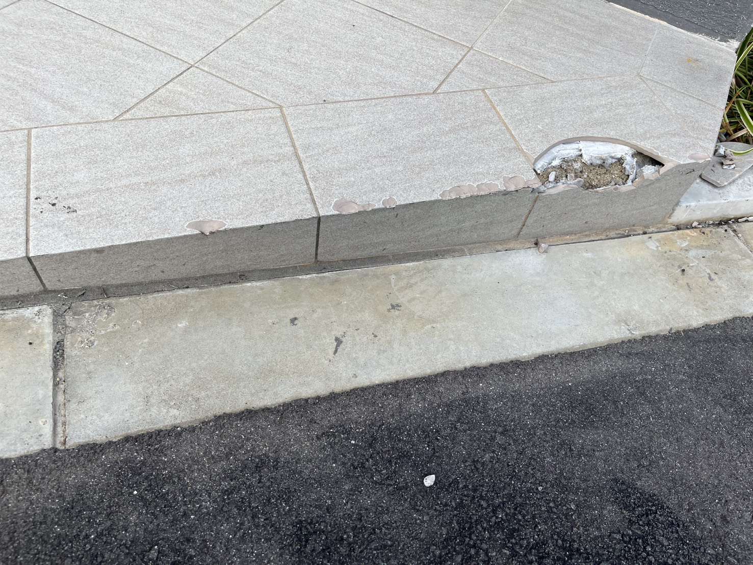 梅田エリアにて、300角タイルの貼り替え工事を行いました。既存タイルには、剥離および欠損が発生しており、見た目だけでなく安全面にも配慮が必要な状態でした。剥離・欠損しているタイルのみを撤去し、健全部分